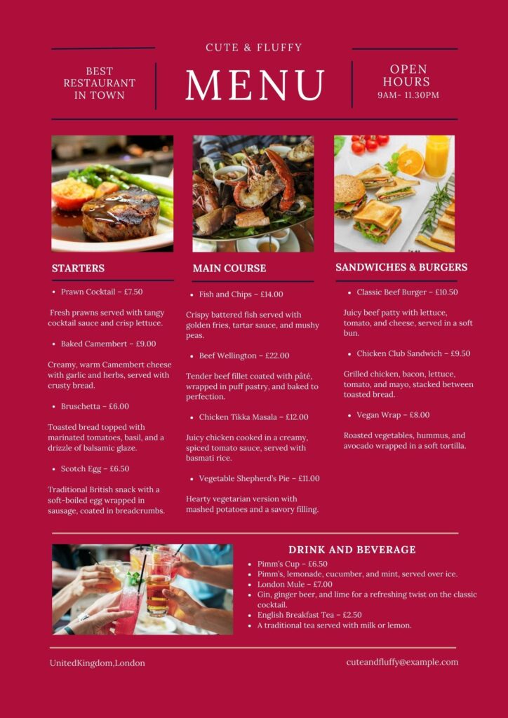 Our menu is a curated collection of delicious dishes, blending classic favorites with contemporary twists. From our crispy Fish and Chips to the indulgent Beef Wellington, each dish is crafted with the finest ingredients to ensure the best flavors. For those looking for something light, our starters like the Prawn Cocktail and Baked Camembert will tantalize your taste buds. Vegetarians and vegans will also find delightful options like our hearty Vegetable Shepherd’s Pie and Vegan Wrap.